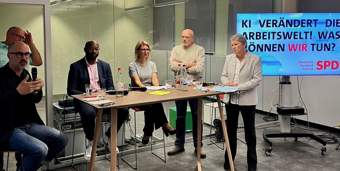 Mit dieser Veranstaltung wollte man auf die entscheidende Bedeutung der Auswirkungen von Künstlicher Intelligenz (KI) auf die Arbeitswelt aufmerksam machen und mit den Besucher:innen Wege diskutieren, wie die Teilhabe der Menschen an dieser Entwicklung aussehen könnte und sollte.
